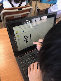 3年生が端末を使っている同じ時間に5年生も端末を使って学習していました。5年生はデジタルドリルを使っていました。
