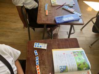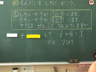 昨日に続いてたし算の学習の様子です。ブロックを使ってたし算の意味を考えながら授業が進められています。