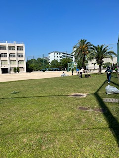本日、芝生実行委員会の皆様が芝生のメンテナンスをしてくださいました。伸びている芝を刈り込んでいます。