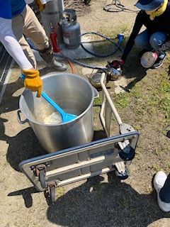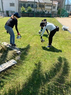 今日は熱湯を使ってクローバーを除草していきました。ひしゃくややかんで熱湯をクローバーの根元にかけていきました。