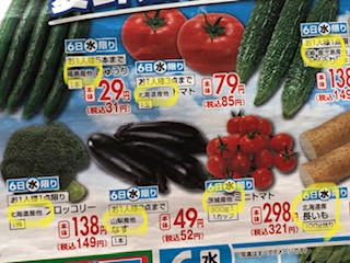 ちらしには野菜の産地が書かれています。(下の写真 産地を黄色の◯でかこんでいます)