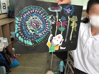 作品が仕上がっていきます。見せてくれる児童もいました。自信の作品ですね。