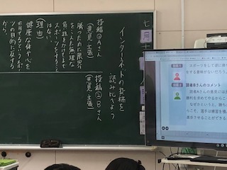 国語で、インターネットの投稿について読み比べての学習を進めています。