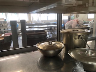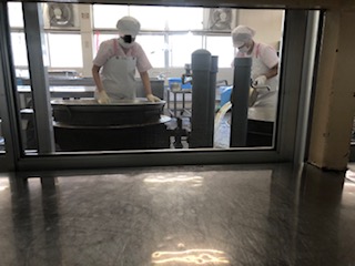 この写真は、すでに調理を終えて子どもたちが給食を取りにきている時間です。