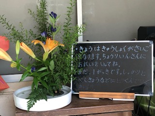 ◯校長室前に生涯学習ルームの方々がお花をいけていただきました。ありがとうございます。