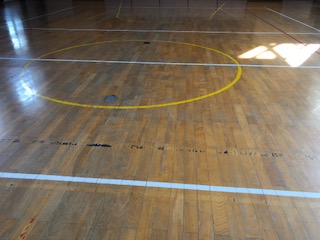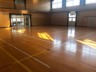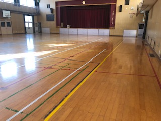 講堂(体育館)の床の張り替え工事を行います。写真は現在の様子です。