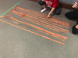 紙テープを割いていきます。割いた長さを測ります。