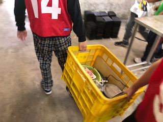 カレー作りの説明して宿舎の方からお聞きして、用具を持って作る場所まで行きます。