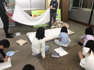寝具の片付けについては担任二人が見本を見せながら説明していました。