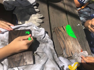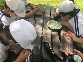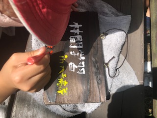 きれいに磨いた焼き板に絵や文字をかいていきます。