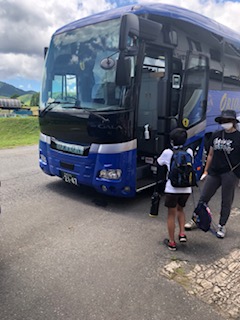 12時45分くらいから子どもたちは手指の消毒をしてからバスに乗りました。
