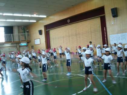 2枚目は、大和田小学校の出し物で、運動会で踊った「journey to the stars」を踊っているところです。「難しいステップなのに、上手に踊ってすごい!」と、西淀川特別支援学校の方々に褒めていただきました。