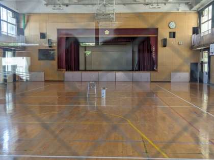 今日8月1日からいよいよ講堂床の張替え工事が始まります。