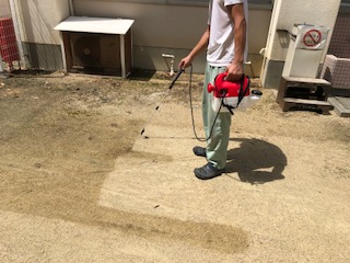明日からしばらくいきいき活動もお休みとなります。子どもたちがいない時期を見計らって中庭の除草などを行いました。