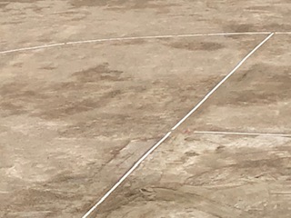 1学期から教員によって運動場のトラックのラインテープの張り替えが進められています。