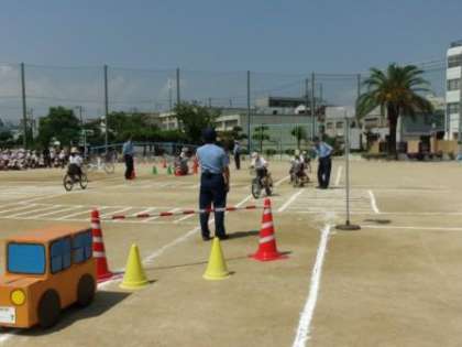 今日は、お巡りさんが来て、自転車の乗り方、歩き方を教えてくださいました(*^_^*)