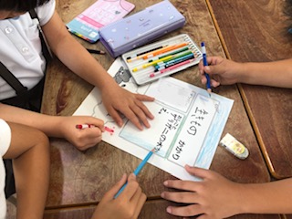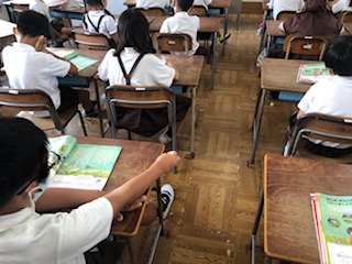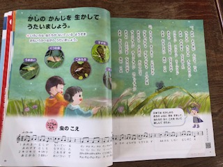 2年生の一クラスは音楽で「虫の声」を学習しています。担任がスマホで曲の中に出てくる虫の鳴き声を聞かせていました。