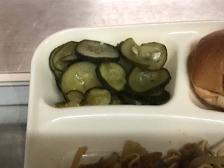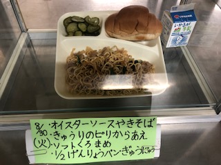今日の給食は、焼きそばです。きゅうりもつきました。