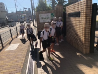 今週は二学期のあいさつ週間です。代表委員会の子どもたちが門であいさつをしています。