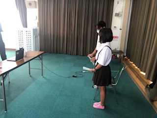 バスケットボールのゴールを体育担当の教員が向き合った形に置きました。これによってゲームができるようになりました。譲り合って使うことや絶対にバスケットボールのゴールに乗らないことを話しました。