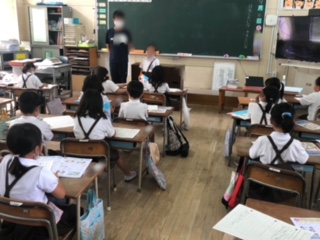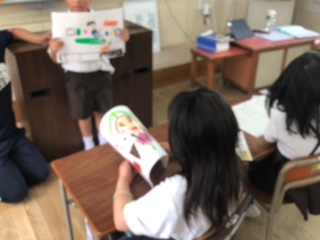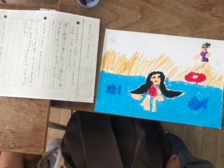 小学校で初めての夏休みにしたことを絵や文章にまとめました。今日は一人ずつ発表していきます。