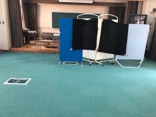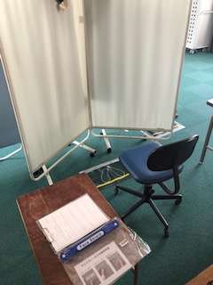 今日は修学旅行前の検診を多目的室で行いました。この写真撮影の後、校医先生が入られ、女子、男子の別に検診を行いました。