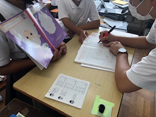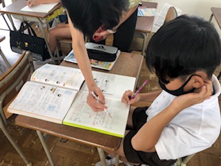 一斉授業だけでなく、このようにノートを見たり、質問を受けたりしながら、一人一人に寄り添った指導も進めています。