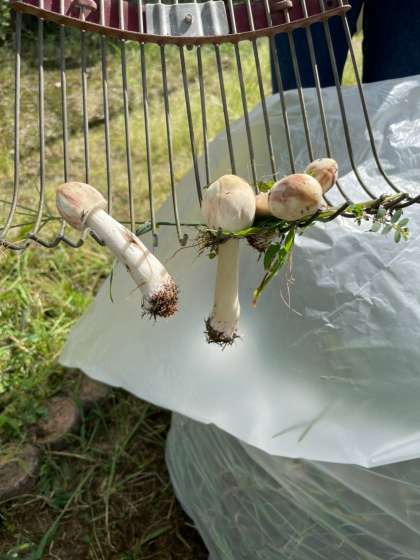 芝生のメンテナンス中にキノコが見つかったそうです。調べるとヒカゲタケのようです。絶対に食べてはいけません。