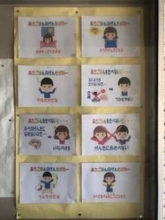 保健室横から運動場にでる廊下に保健関係の掲示板があります。