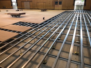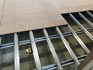 縦方向の金属棒の上に横方向の金属棒が並べられました。その後、すぐに板が並べられていきます。まもなく、この支えの金属棒も見えなくなります。正に縁の下の力持ちですね。