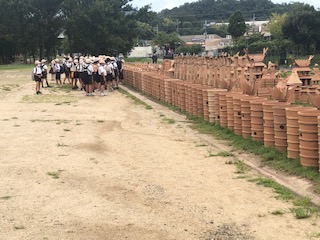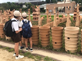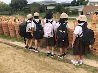 はにわ広場に移動してたくさん並べられている埴輪を見ました。