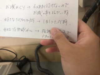 好きな食べ物、好きなプロ野球チーム、趣味などのヒントを聞いて、どの先生かを当てる問題です。
