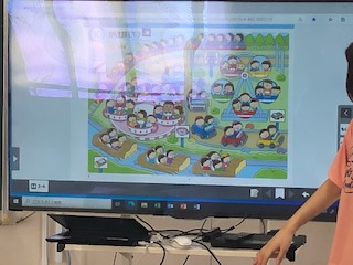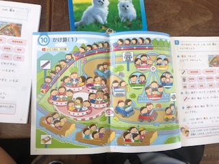 2年生は算数でいよいよかけ算の学習に入ります。今日は遊園地の絵をもとに人数のまとまりを見つけていきました。
