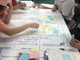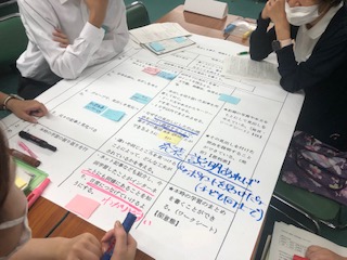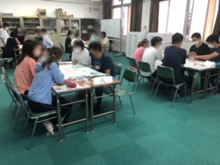 授業を見てから教員がグループで討議しています。この後、教育センターの指導担当から講評をいただきました。