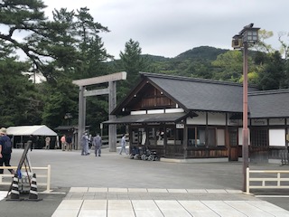 10時45分に最初の見学場所に着きました。伊勢神宮の内宮の横を通っておかず横丁へと向かいます。