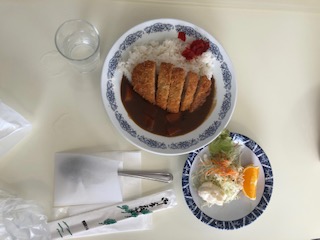 1日目の昼食は、カツカレーライスとミニサラダです。