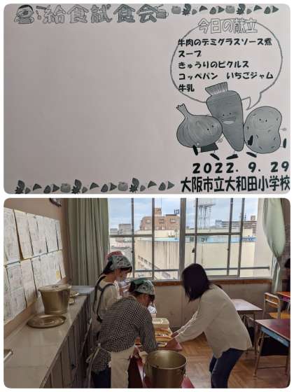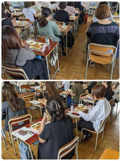 本日、PTAの保健給食委員会のみなさんや多くのボランティア方のご協力のもと、3年ぶりに給食試食会を開催することができました。