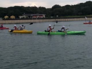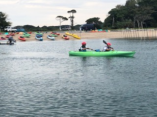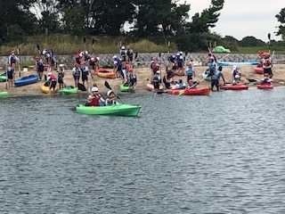 いよいよ海に入ります。歓声があがっています。みんながんばれ。