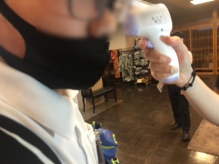 みち潮に入る時に、消毒と検温をしています。