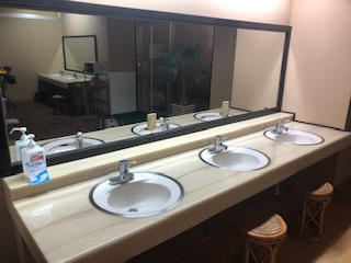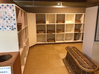 子どもたちの入浴が終わってからの男湯(男子の浴場)です。脱衣所、洗面所です。