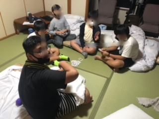 男子の部屋を見に行くと、貸し出されたトランプです遊んだり、自分たちで考えた遊びをしたりしてとても楽しく過ごしていました。