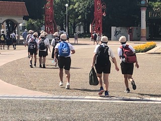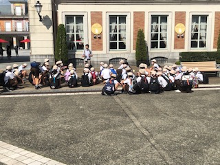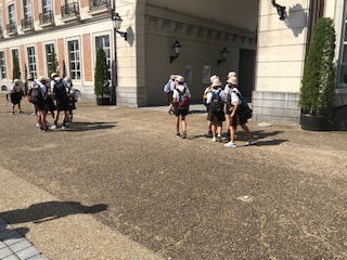 スペイン村での活動についての諸注意を聞いてから活動班ごとに乗りたいアトラクションに向かいました。小走りになっている子どもたちもいます。