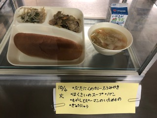 今日の給食には豚肉のカレー風味焼きがでました。
