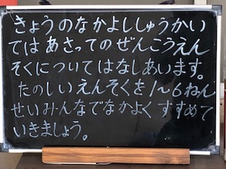 全校遠足は明後日・7日(金)に行います。それに向けて今日のなかよし集会で、たてわり班での行動について話し合いました。