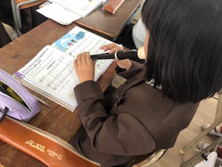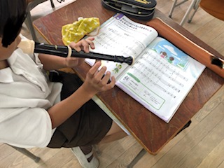 3年生から音楽でリコーダーを学習していきます。まだ慣れていないようですが、一生懸命練習しています。