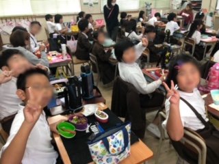 今日はピースでの写真も撮っています。お弁当がとても楽しいようですね。