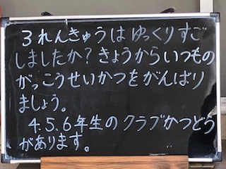 体育の日を含んだ3連休があけました。ふだんの学校生活のリズムを取り戻していきたいものです。