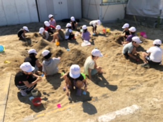 山を作ったり、穴を掘ったりして楽しんでいます。