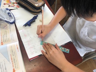 今日はコンパスなどを使って拡大図をかきました。