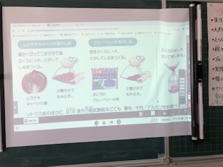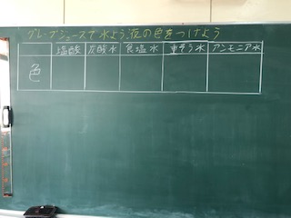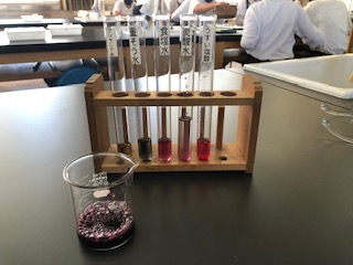 今日は、いろいろな水溶液にどのように色をつけていけるかを確かめました。